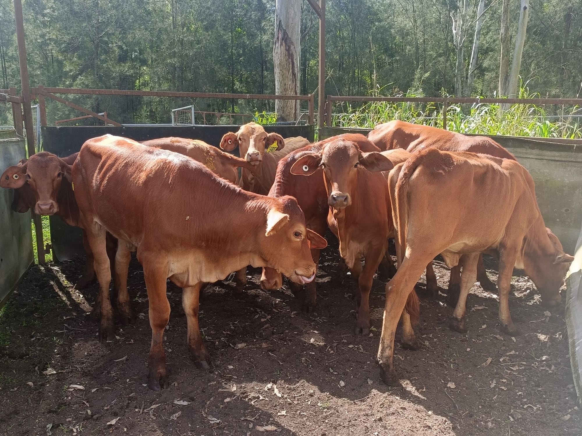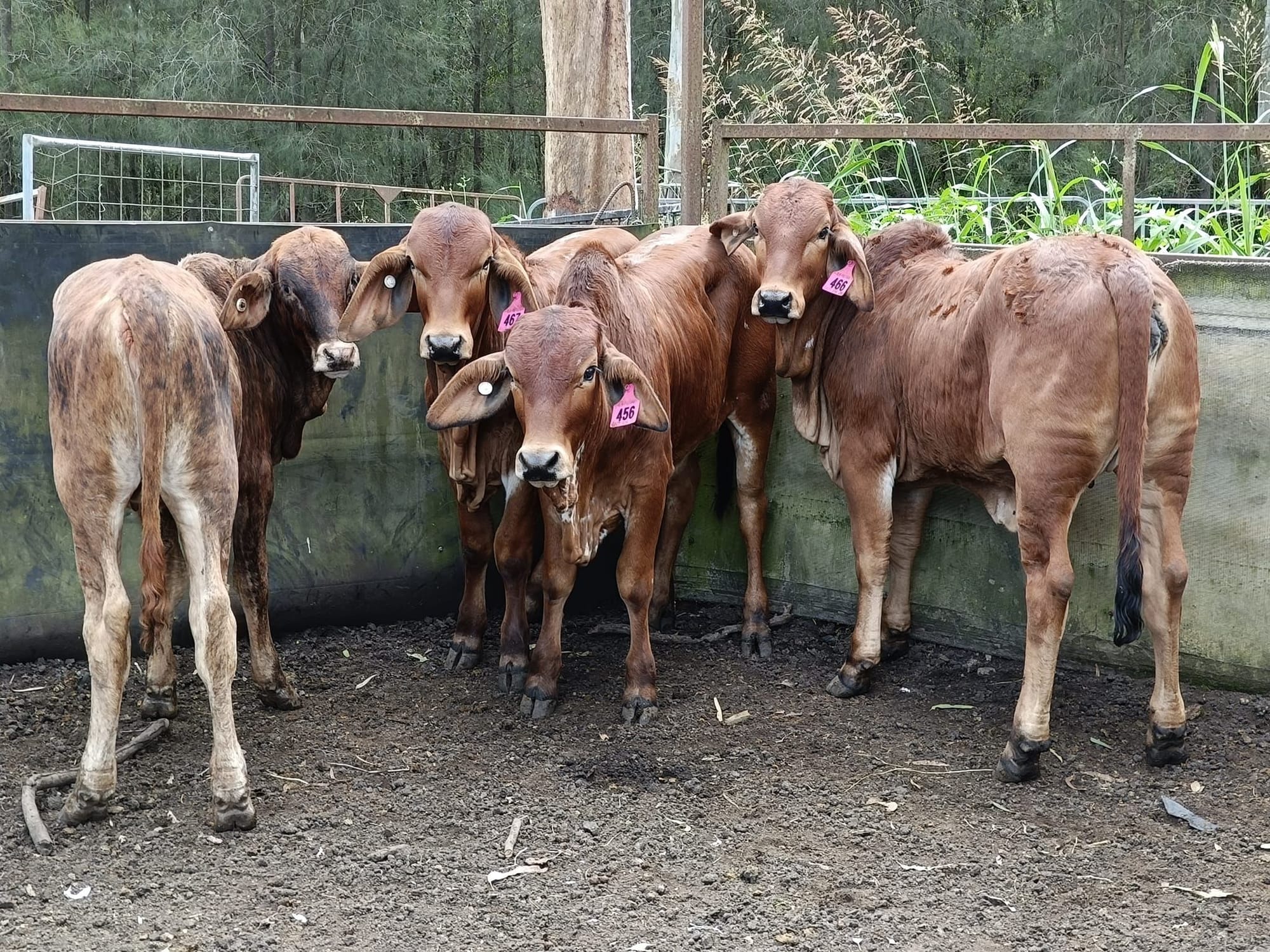 4 good quality Brahman heifers, fair size, would make good future breeders, 3 reds 1 brindle, selling together $528 each including GST can organise cheap transport if required or location is Jimboomb