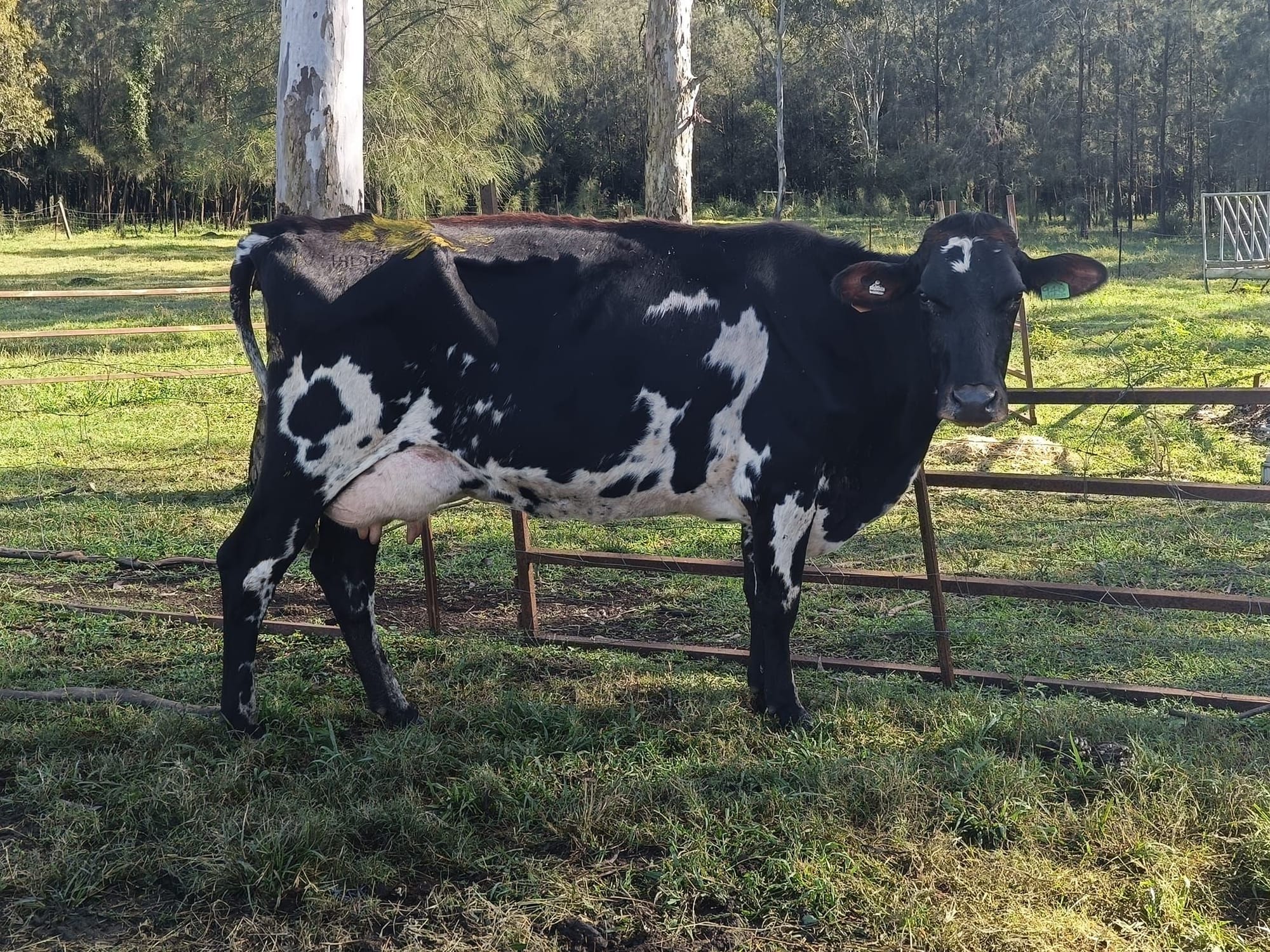 Jersey Friesian X cow, good clean udder, sound in all 4, most suited to hand milking but will foster, $1210 including GST can organise cheap transport if required or location is Jimboomba