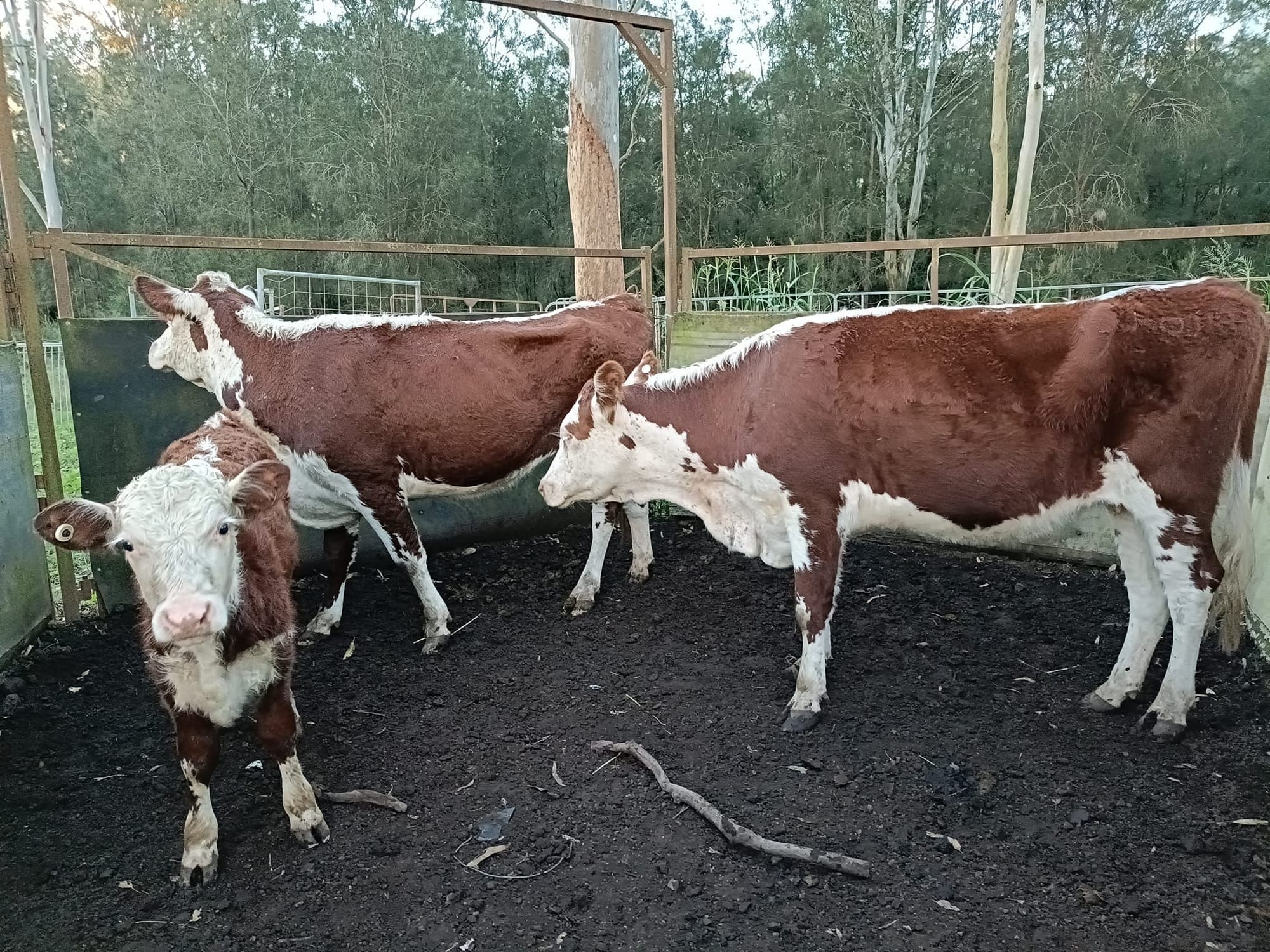 Hereford cow and calf, and hereford heifer in calf, very quiet $1980 the lot including GST can organise cheap transport if required or location is Jimboomba