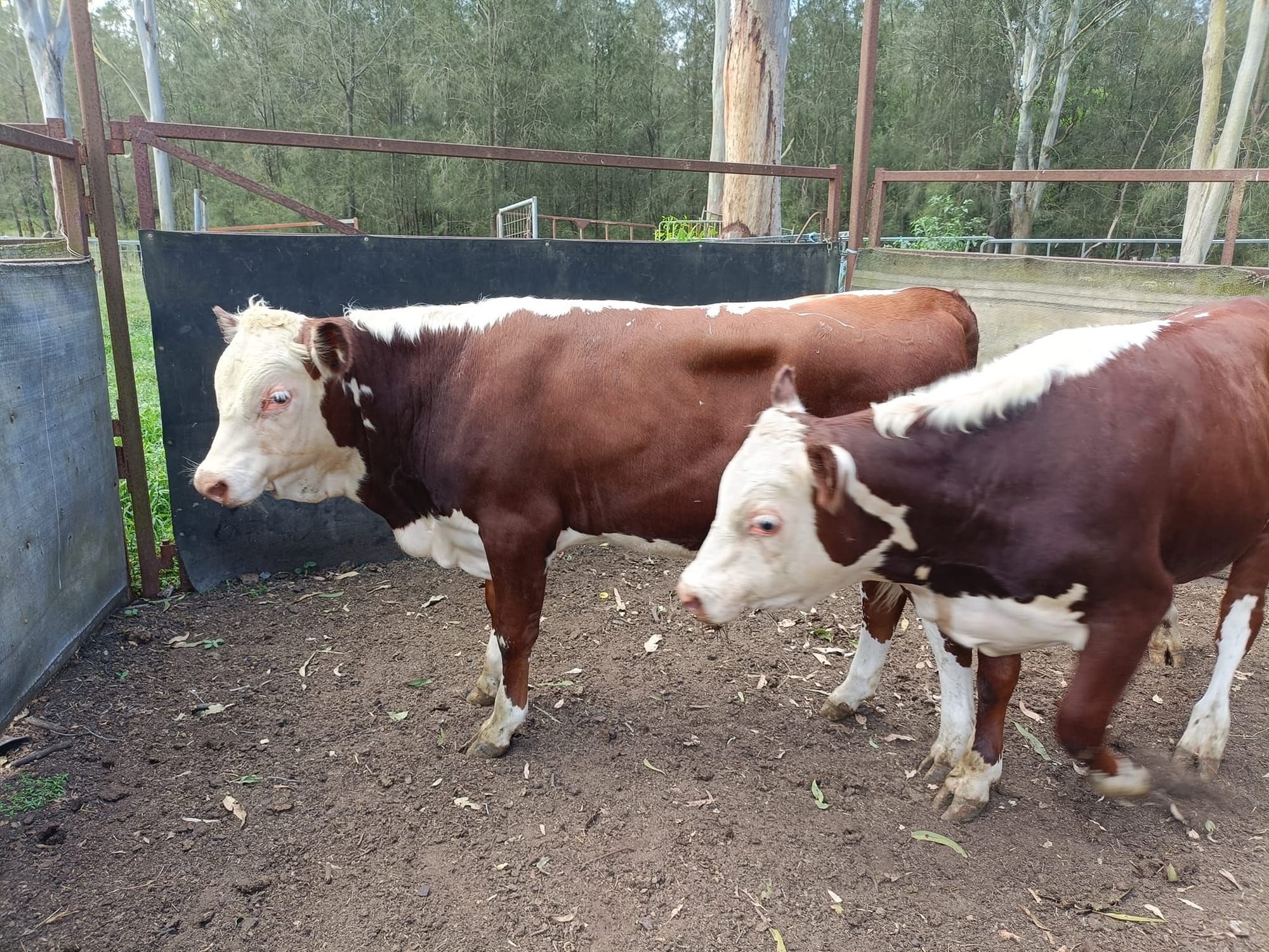 2 young Hereford bulls, very very quiet, perfect for a small block, $693 each or happy to split if someone wants just one, can steer as well.Can organise cheap transport if required or location is Jimb