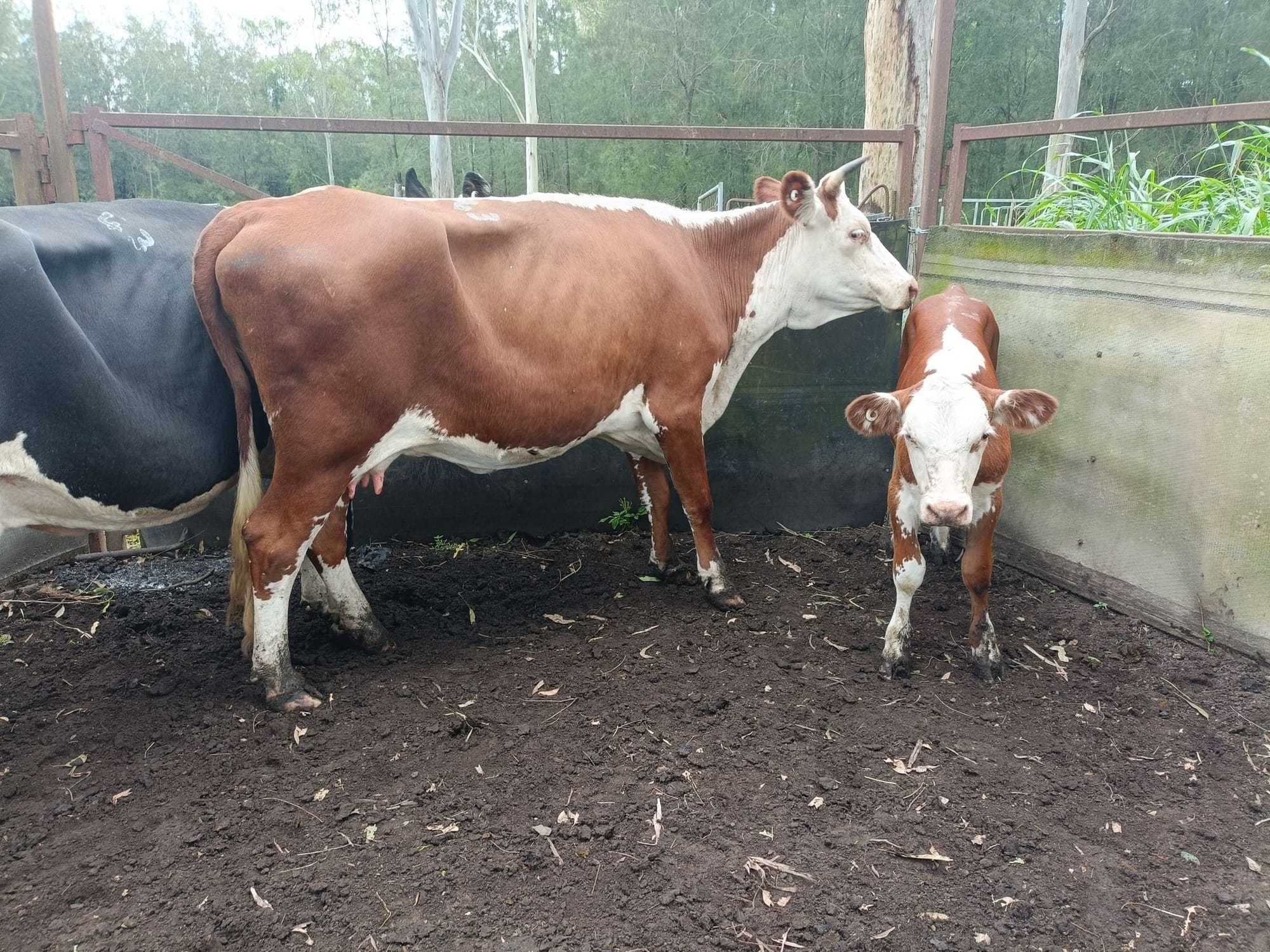 2 Hereford X cows and calves, very very quiet, selling together $1320 including GST per unit, can organise cheap transport if required or location is Jimboomba